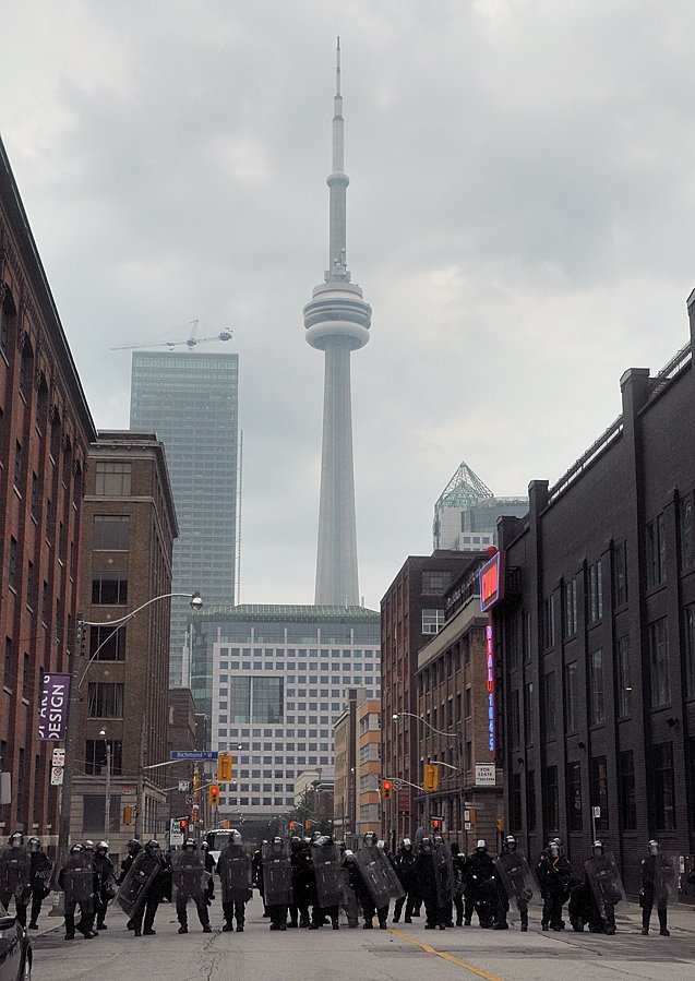 But as the crowds reached Queen St, from no matter what street, they started seeing the riot police. We saw some from London, Calgary, RCMP, Waterloo and Toronto.